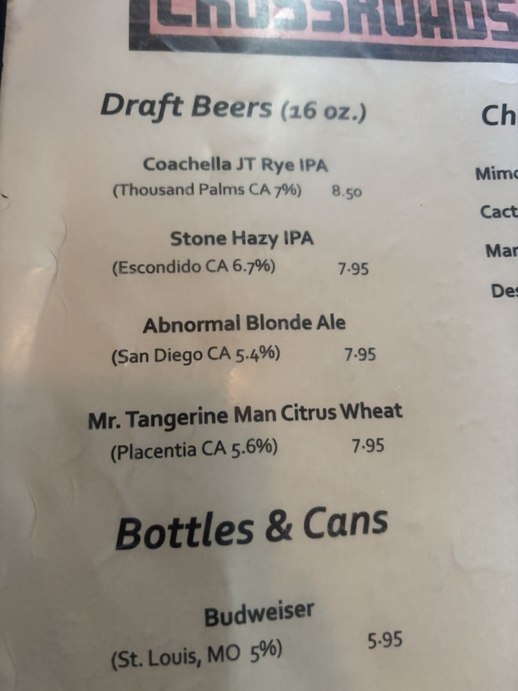 Crossroads Cafe Menu